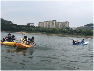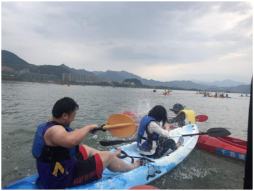 團隊任務完成後,教練讓我們散↑∏₹₽開(kāi)自(zì)由活動啦。剛開(kāi)始都(dōu)比較矜™♥β↔持,各自(zì)劃開(kāi),欣賞湖(hú)光(guāng)山(shān)色,教練看(kàn)不>↑•♣(bù)下(xià)去(qù)了(le),給你(nǐ)一(yī)槳的(de)水(shuǐ),§™于是(shì)大(dà)家(jiā)矜持不(bù)起來(lái≈≈π₽)了(le),互潑吧(ba)。