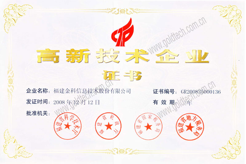 我司于2008年(n↕<ián)12月(yuè)再次通(tōng)過了(le)£ ≈高(gāo)新技(jì)術(shù)企業(yè)認證,并獲得(de)±±了(le)福建省科(kē)技(jì)廳、福建省稅局、福建省财政廳、福建↔¶$γ省地(dì)稅局聯合頒發的(de)《高(gāo)新技(jì)術(shù)企業(yè)認證←&》證書(shū)。