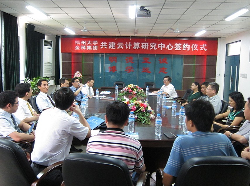 2011年(nián)7月(yuè)22日(rì), ↑≠≥在福州大(dà)學新校(xiào)區(qū)迎來(lái)了(le)福州大(d≥λ↕ à)學、金(jīn)科(kē)集團共建“福州大(dà)學-金(jīn)科(kē)公 Ω> 司雲計(jì)算(suàn)研究中心”校("↑±©xiào)企合作(zuò)的(de)簽約儀式。
