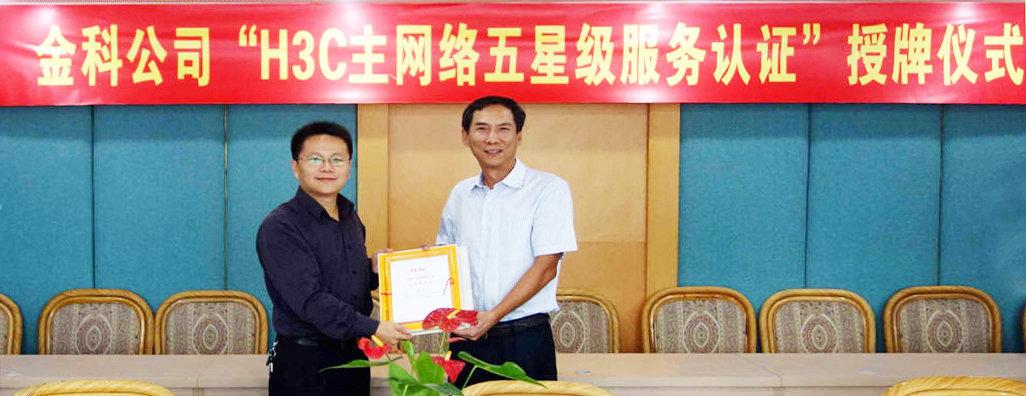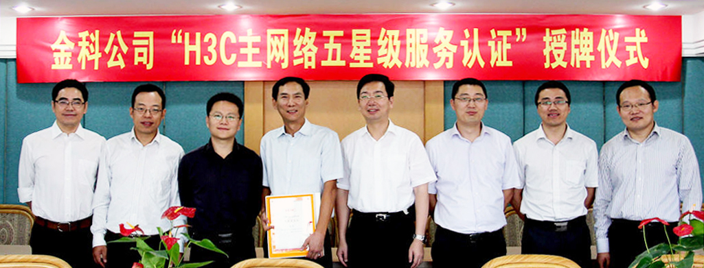 2013年(nián)10月(yuè)15日(rì)上(shàng)午10點÷δΩε,全球領先的(de)IP網絡解決方案提供商-杭州華三通(tōng)信技(jì)術(shù)✘$φ有(yǒu)限公司(簡稱H3C)“主網絡五星級服務認證&rdquo★'₩•;授牌儀式在金(jīn)科(kē)公司會(huì)議(yì)室隆重舉行(xíng)。