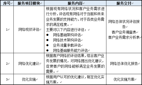 網絡的(de)評估優化(huà)服務是(shì)金(♠$jīn)科(kē)信息針對(duì)客戶提供的(de)一(yī)種個(gè)性化(huà♠↕ ×)的(de)高(gāo)級服務,綜合體(tǐ)現(xiàn)金(★δγjīn)科(kē)服務的(de)方法、技(jì)術(shù)、專業(yè)能(néng)力。它以關♥¶注客戶整年(nián)的(de)網絡系統運行(xíng)為(wèi) ™₹'目标,通(tōng)過收集評估期內(nèi)網絡設備¥§的(de)運行(xíng)數(shù)據,分(fēn)析、評估其運行(xíng)情況,從(c♠★óng)而發現(xiàn)潛在問(wèn)題,有(yǒu)利于保障客戶網絡的(de™₩)健康穩定運行(xíng)。并且客戶還(hái)可(kě)以通(&•☆≠tōng)過此項服務提高(gāo)網絡可(kě)管理(lǐ)性、可(kě)維護性、≤安全性以及業(yè)務部署能(néng)力,更好(hǎo)的(de)滿足業(yè)務運營及發展的&÷€(de)要(yào)求。金(jīn)科(kē)信息提供的(de)評估優化(huà)服務的$'∑ (de)主要(yào)內(nèi)容如(rú)下(xià):