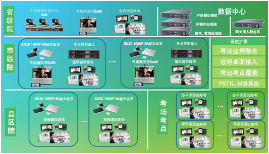 1. 背景簡介 教育考試院作(zuò)為(wè€↔£i)國(guó)家(jiā)教育考試考務管理(lǐ)與服≠¥務平台的(de)重要(yào)組成部分(fēn),隻有(™↓ ∏yǒu)一(yī)台與國(guó)家(jiā)考試中心對(duì)接的(de)≠±視(shì)頻(pín)終端,系統建設前無任何視(shì)頻(pín)會(huìΩσ$)商系統或指揮系統。教育考試院以視(shì)頻(pín)會(huì)商子(zǐ¥★•)系統建設為(wèi)切入點,融合視(shì)頻(p∑ín)會(huì)商子(zǐ)系統和(hé)視(shì) λ'頻(pín)監控子(zǐ)系統,建設考試考務指揮系統。其中視(shì)頻(pín)會(huìα₩)商子(zǐ)系統包括構建二級MCU平台(省、設區(qū★¥)市(shì));省、市(shì)、縣建設視(shì)頻(pín)會(huì)場(c≈δ'πhǎng)(包括視(shì)頻(pín)會(huì)商終端、顯示設備等)。監控✘δ≤子(zǐ)系統主要(yào)通(tōng)過在視(shì)頻(pín↔•∏•)會(huì)商中集成原有(yǒu)的(de)考場(chǎng)$✔≥δ、保密室監控平台。 2. 系統建設要(yào)求 教育考試院考試考務§★"指揮系統以該院指揮中心為(wèi)系統核心,以及設區(qū)市(shì)考試機(jī)₩ γ∏構為(wèi)分(fēn)中心,各縣(市(shì)、區(qū))招生(☆&shēng)考試機(jī)構為(wèi)終端節點,融合全省目前的(de)考場(chǎα↕ng)、保密室巡視(shì)監控平台,建設一(yī)套集視(shì)頻( ©pín)指揮通(tōng)訊技(jì)術(shù)解決方案✔™系統、IP語音(yīn)聯絡中心、桌面視(shì)頻(pín)、網上(shàng¶&®)會(huì)議(yì)系統和(hé)移動協作(zuò)等方面于一(yī)體(tǐ)的(de)通(•₩↓φtōng)信協作(zuò)系統,覆蓋省市(shì)縣♣∑☆∏招生(shēng)考試機(jī)構、考點中心、考場(chǎn€↕•g)和(hé)保密室等。